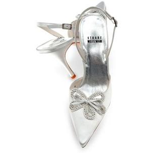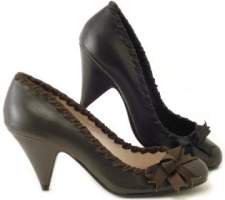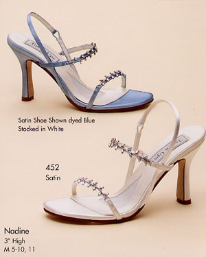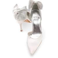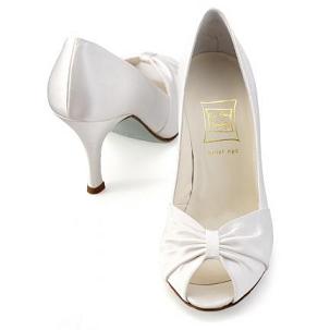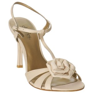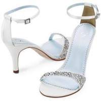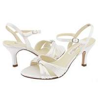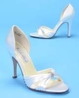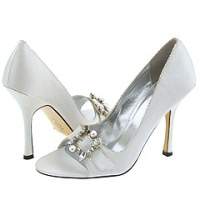 I haven't definately decided on these shoes but I bought them just in case. I have them in a pink and balck and they are so comfy and perfect sized heal. My dress is champagne so I can't where a white shoe---this picture doesn't do the shoe justice at all--its really cute in person and is an off white color--i put the second pic of the brown and black just so you could see the side view. they are $75 and are made by an Itialian company called 'Navid O Nadia' . I figured if I didn't where them for my wedding I could still where them with jeans like I do my pink pair