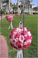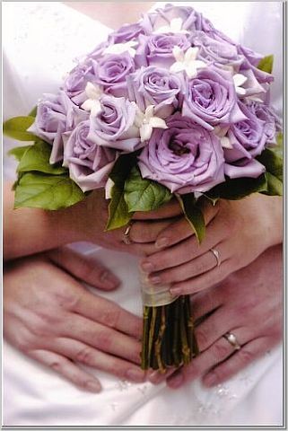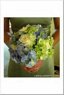 I don't have pics on my work computer but my color scheme is baby blue, silver and white.Bo-kay- blue hydrangeas with white tea roses