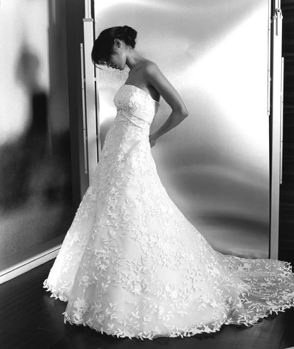 I really would NOT have tried this dress on.. I was against anything with roses/flowers or bows on them. I wanted scroll work or detailed art but NO flowers and NO bows. The Macy’s Lady – Fay told me to try this on. I’m like ‘no don’t like those huge flowers’ but I figured what the hell. I bought it instantly (well haggled the price for 4 days) but bought it. I can’t believe how much I love the way it feels on me and how I feel in it.