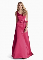 So, I was in a wedding a few weeks ago and we wore the Watters and Watters dress seen below (the one with the gathers on the back). Well, about 5 minutes into the reception, someone stepped on the back of my dress and all of the gathers pulled out!!! They are only held up by a small bit of thread, and my dress went from being beautifully gathered in the back to stick staright. And, since the gathers are made up of ectra fabric, when they pulled out I ended up having this huge train in the back that I had to hold up all night long.So, if you have slected any of these dresses for your BM's, tell them to get the gathers reinforced. Any seamstress can do it. The dresses are beautiful, and i was so sad mine fell out