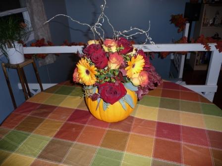 is anyone using pumpkins with flowers or anything for centerpieces?? if so can you post pics?
