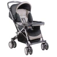 The handles on the Venezia are ergonomically designed and are adjustable and reversible. The Venezia is certified by the JPMA group as a safe and trusted stroller. All-wheel brakes are an added touch and the front/rear swivel wheels come fully equipped with shock absorbing suspension.