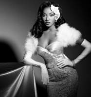 So my theme is old hollywood. I was looking at the estelles site for mom dresses and think i found one that resembles my inspiration photo. I wantto wear it with Long White gloves white and red lipstick and old hollywood hair style.. what do you ladies think? (the dress is short)First pic was my inspiration photo