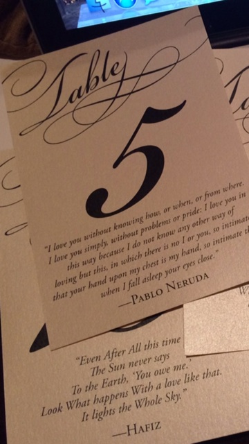 So pretty! I love the quotes on the table numbers!