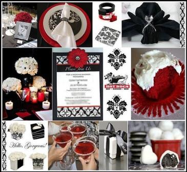 Im doing black,white,and red.i love the striking contrast.- deep red bouquet- black hair-white dress. the BM are wearing black with red sashes