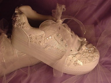 I think the 2nd pair are super cute. My vote is to wear reg shoes through ceremony and formal pics, and then ditch them after!