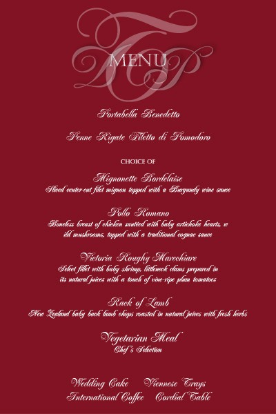 Tanbride- did you make those menus or did they supply it? As far as I know the placecard table is right outside the door for the Manor room. Good luck everybody thing. Less then 5 months!!!!