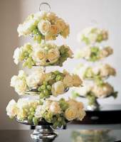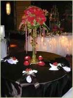 Tanbride... I love love love your menus. Classy with the monogram. I might have to borrow your idea. Did you have them printed? Did WBM offer them?Centerpeices... We are using the Garden room. I am concerned about crowding. The tables are very full with all the china so we are going with an elegant pedestal arrangement or topiary (sp?) . We recently saw this arrangement at an expo by Party Sensation. Try to ignore the black table cloth.