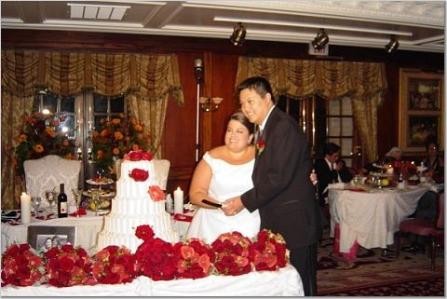 Annette=-here is a photo of my dais table - the WM actually attachs the wedding cake table to the dais table in the Manor Room. I used my bridesmaid and my bouquets on the table as well as I had my florist put rose petals on the tables and the WM took my engagement photo from my placeard table and put it on the cake table. The bride and grooms table is not that big considering all the dishes, toasting flutes, glasses, etc.The WM gives you candlesticks but I took them off and put pillar candles instead - also, I used my 2 alter flower arrangements and put them behind the dais as you can see in the photo. I hope that helps!