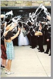 we are not allowed to throw anything at the church, so we are doing ribbon wands instead
