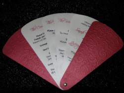 I am making the paper one that looks exactly like the first pic .. although Im not doing the red paper.. because people will just throw them out and I dont want to waste extra money on that... Here is my sample fan (not in my colors though) I just randonly made to see how it would come out