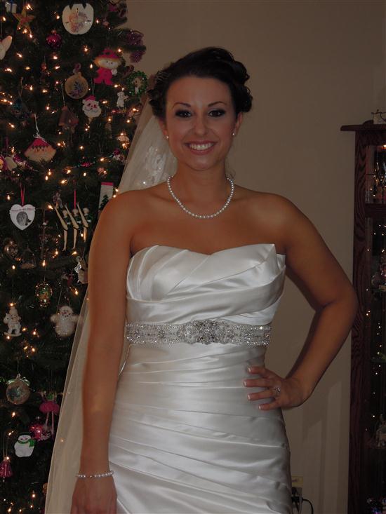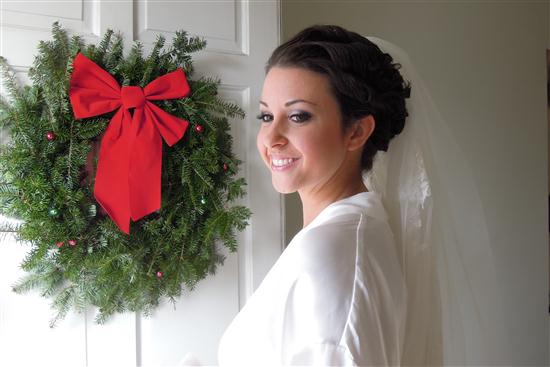 Gorgeous! Love the pictures with the tree and the wreath. You look so happy and beautiful! Congratulations!