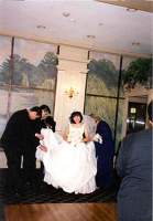 I did had a bussel in my dress but it was not a French style like these pics. It was just a regular bussel with a bow shape. My seamstress put hooks on my gowns hidden so well that it was impossible to find the stupid hooks! The photographer was trying to do formal portaits with both families that he said not to mind the bussel. I'd got a pictures from our disposable cameras with our families looking for the hooks! Very funny photo too!