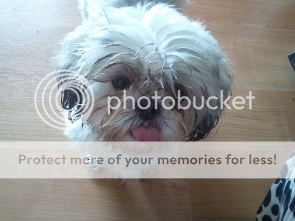 every since we got our fence this little girl has been loving the backyard. can you tell it was a little wet out yesterday. lolTHE CLEAN UP. LOL