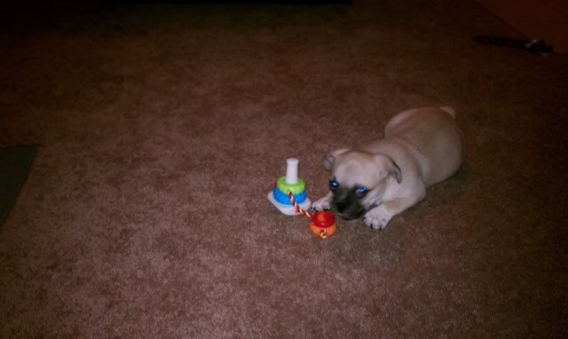 I dragged dh to a puppy store and he said that we were just going to look and after playing with one for a minute we wound up with this