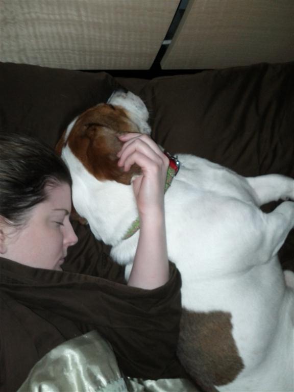 WE went to shake a paw just to look and Linus found us! I swear! I have always wanted a basset hound and DH has always wanted a English bulldog. When we walked in and there was a bull dog basset mix, I just had to hold him. He was so floppy and falling all over the place! I had been asking for a puppy for ever and was always told when we were married and in better situation. Well, I was prepared to walk away but DH wouldn't leave the store. We brought him home that day!!! He is a hand full! HE chews everything! My Christmas tree is stripped on the lower half! haha! He just turned one, so hopfully this stage will end soon. I was say though he has never peed or pooped in the house, super easy to train for that!Oh and the kicker he was born on Thanksgiving, same as me!!!