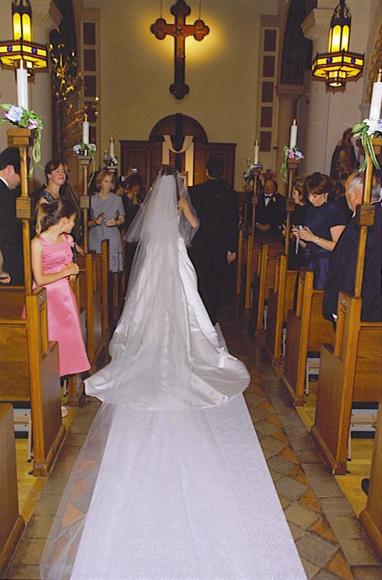 and here you can see my veil is waaaaaaay too long but b/c of the heat I didnt put it in until the ceremony and carried it until it was time for me and dad to walk...if I had known I wouldhave cut it myself