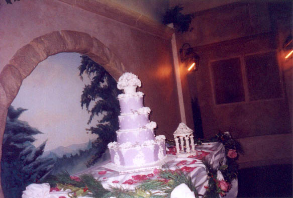 I chose just a very simple cake design with flowers on the top. also, you can't really tell from this picture, but the table was draped with tulle and scattered with red rose petals.