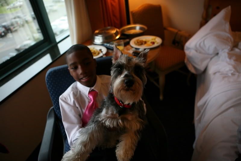 DH picked out his tux, along with the tuxes for his guys. He was extremely upset about the tux because buttons kept popping all night