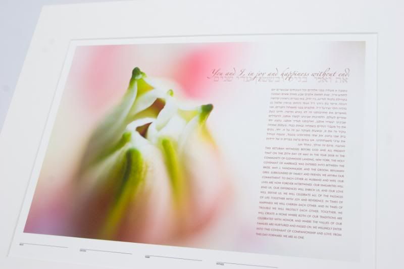 Since DH is Jewish, but I am not, I had no idea what a ketubah was when I first heard the word! After looking for ketubah’s on the web for weeks, I wasn’t really thrilled with the designs. Some of them are beautiful, but just not my style and I wanted it to be something that we would always want to keep hanging in our house. I found modernketubah.com pretty early in the process but didn’t think much of it because I thought we could find something we liked equally as much for less $. When we didn’t find anything else that we liked, I went back to Daniel’s website and lo and behold, he had new designs up! AND….the new designs were in our wedding colors! What are the chances!?! I took it as a sign and ordered ours immediately. Daniel was easy to work with and always responded to my emails quickly. When the ketubah arrived, I could not believe how gorgeous it was! Really, the pictures hardly do it justice. I HIGHLY HIGHLY recommend www.modernketubah.com!
