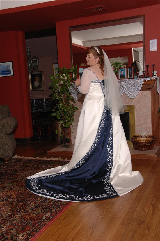 THIS DRESS IS SO BEAUTIFUL WITH THE NAVY I CAN'T BELIEVE IT!!!I haven't seen detail on the sleeves like that, and the way you incorporated the plaid on the flower ribbon, with the kilts, and the navy on the BM's, itt's all just beautiful. Budget or not, I think your wedding party looks AMAZING!!!