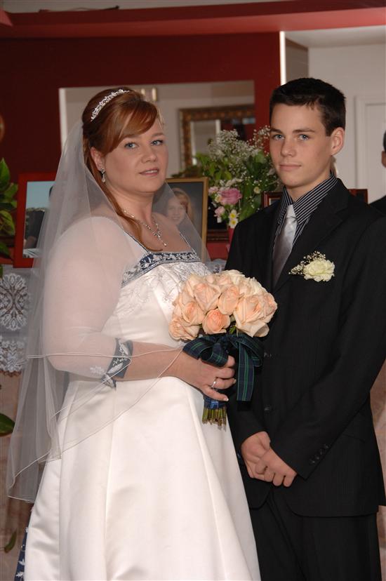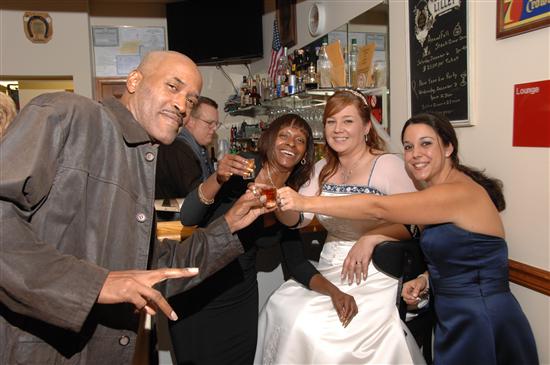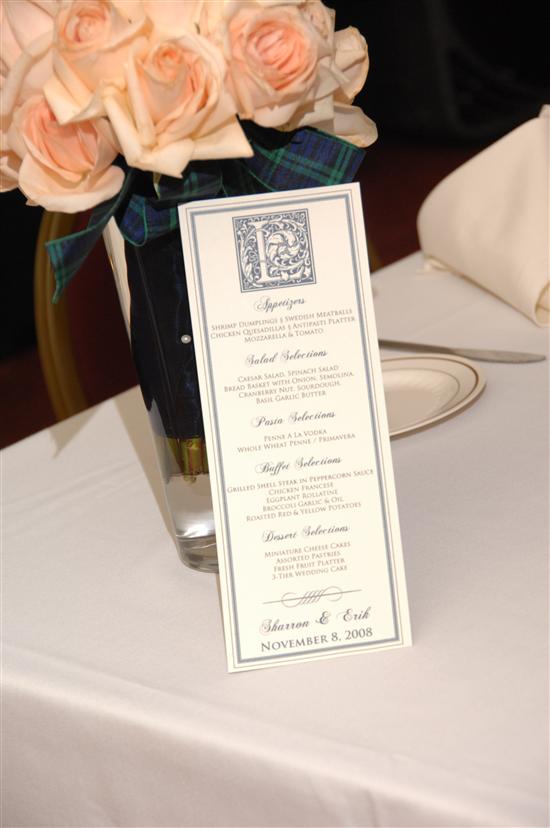 And last but not least, Moi We were on an insane budget so I did A LOT myself - STDs, Invitations, Cardbox, Programs, Bubbles, Seating Cards (candy bars with the wrapper as the seating instruction), Centerpieces (glass cylinders with floating candles that doubled as table numbers), the Flowers (bouquets, bouts, corsages), the Menus, heII - even my makeup and setting up the hall the morning of! I must say, what I saved in money I lost in sanity