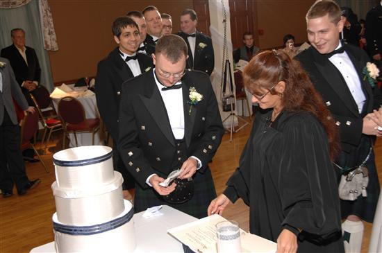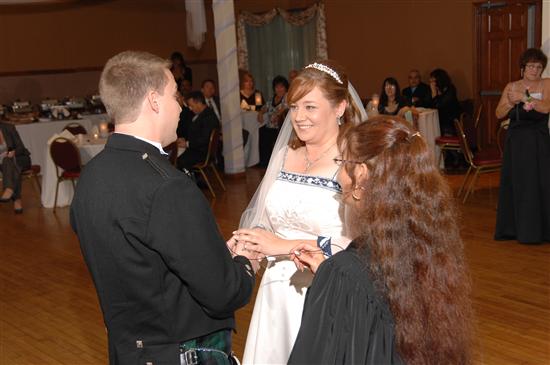Rev. April Gismondi: Can I tell you how much I LOVE this woman? She was SO wonderful - everyone absolutely loved her. Sweet, wonderful and a real 'take charge' woman. I wrote the ceremony and emailed it to her, she added her own touches and it was beautiful. DH wanted to surprise me with a handfasting ceremony - he had the best man pick up a sash in our tartan and he pulled Rev. April to the side and asked her if should wouldn't mind adding it to the cermony so last minute. Of course she wouldn't mind! She added it and it was beautiful and seamless. Did I mention how everyone just loved her? I felt bad I didn't get to say goodbye to her but DH did. I also would have loved to get a pic with her