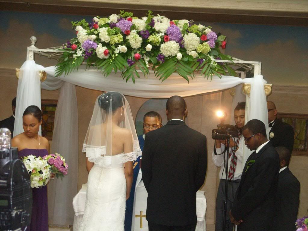 The spread that was over the alter was put at our Dias table and was sooo big! I think we actually left it behind because we had no room for it. I remember encouraging leaving guests to take flowers home from the alter spread lol. The only thing I would have changed looking at pics is that the flowers on the Dias table were so big as well that in the the pics of the toast, DH and I are somewhat blocked. I would have rather had the BM and my BOK as the flower display on the Dias. I think they were big and beautiful enough to do the job…but everything was still wonderful.
