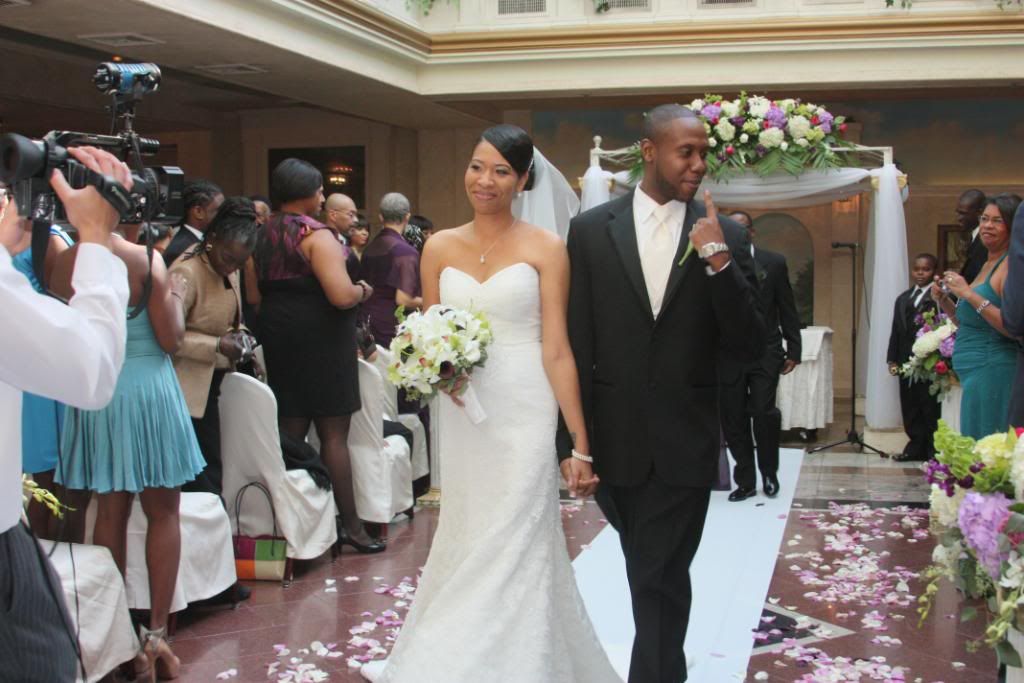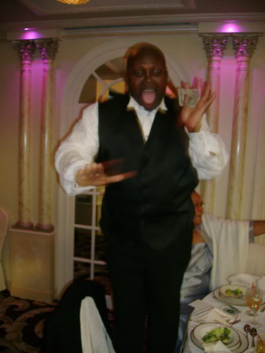 My biggest surprise was our MC, Koko (Chris). I’d read nothing but negative LIW reviews about him and was becoming paranoid. He seemed kinda animated on the phone and I was scared he’d be cheesy…and my guests can be brutal LOL. He came up with this awesome game for the centerpiece that had guests dancing around the table for dollars then dancing on the chairs!! DH and I were rolling watching who’d be the one getting up on the chair. HILARIOUS! He also switched the Bok catcher with my poor grandmother LMAO!!! That garter catcher came blindfolded towards his “fiancé” (who’d caught the bok) on his knees to “Poison” by BBD, and the whole party erupted!! The look on his face when we un-blindfolded his eyes!!! Even funnier was that my grandfather had ended up right besides my grandmother watching like her bodyguard or something! Definitely still has people talking. Koko and Enzo did an absolutely amazing job and met my highest expectations. I took forever to finish deciding on music and Startlight (Mike) was nothing but patient and never rushed me even when it was less than a week and I hadn’t chosen procession music! I heard from a family member later on that the cocktail hour music was really really low towards the back of the room. I didn’t get to my cocktail hour, so idk…but no one else either noticed or cared.
