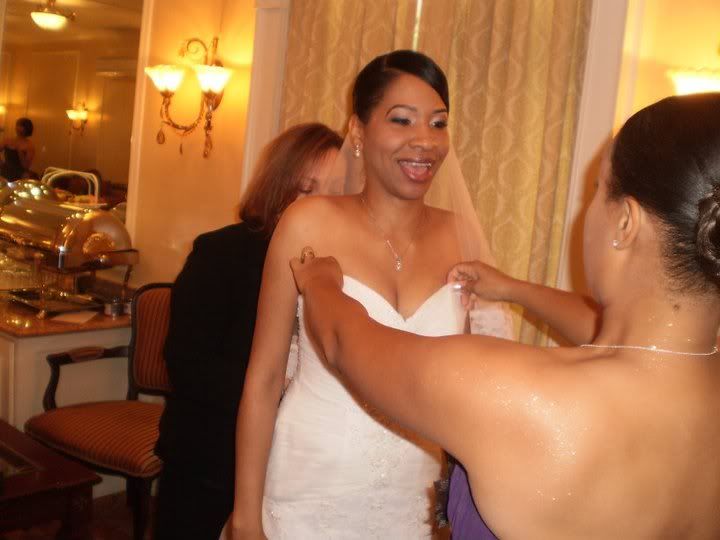 The only thing that went “wrong” was that they gave the wrong appetizer...I was kinda looking forward to the new one we chose, but who cares! From the moment I walked in I felt like a Queen. My attendants Naomi and Billy were AMAZING! They never let me lift a finger. I’d told my Matre’d (half jokingly) during our final meeting that I needed Pepsi. I’m a Pepsi-holic and strongly believe in there being a major difference between Pepsi and Coke. I’ll drink a Coke if I have no other choice, but NOTHING compares to an ice cold Pepsi! It’s my drug of choice. I brought my own can with me that morning just because I knew they served Coke products. When I walked into the suite I was surprised and elated to see cans of Pepsi lined up waiting for me to crack them open!! Thank you JT for getting me Pepsi Wasted on my wedding day!!!!!!!!!!! They fixed my dress, bustled me up, got me in and out on time and I love them for it. The ceremony room was a dream!! The sun came through the skylight perfectly!