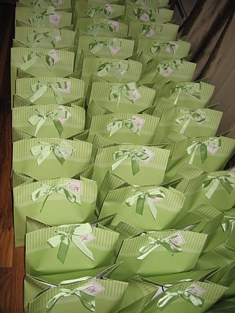 My Mom made me the adorable towel cake, the actual cake was provided by the restaurant (and was delicious) and my sister did the shopping bag invitations and the cake cookes, among many other things.