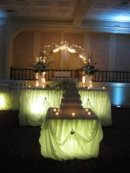 Beautiful wedding and great review! I love the way your head table and cake tabnle were lit up!!Congrats!!