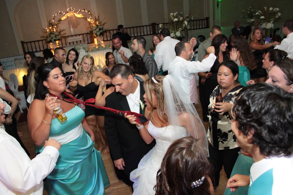 I saw MRG Productions at one of the many bridal expo’s I attended. Entertainment was a very important aspect for my husband and I. My husband is 100% Portuguese so we really wanted a DJ company that could provide both Portuguese and American music. At the expo we spoke with Robyn which I might add is a sweetheart; she assured us that providing Portuguese music would not be a problem. We went home that night and we both knew they were the DJ Company we wanted for our wedding. We met with Marty (who is awesome) about a week later to go over what we wanted. Marty provided us with everything DJ, MC, Up lighting, Plasmas, Gobo, Zap Photographer, Percussionist.