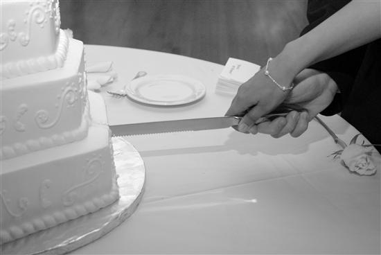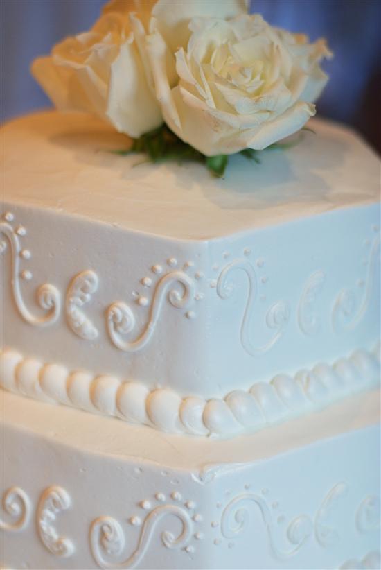We wanted a hexagon three tiered white cake with a vintage-esque design on it and we got just that. It was perfect! People loved the cake! So many people came up to us to tell us they had seconds on the cake! It was very good!