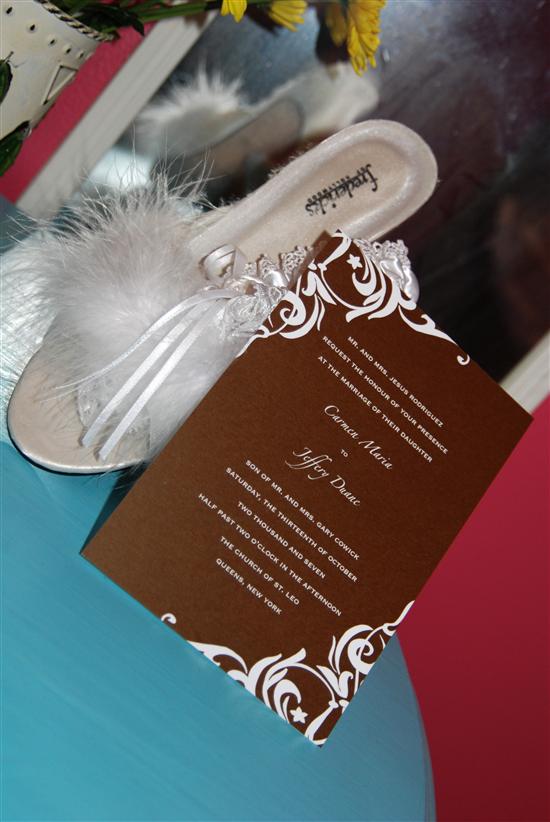 proof three times before I received my invites. Over a month later I finally decided to start stuffing my invites and noticed there was a tiny (the size of a pen tip) red mark on an invite. The next one had it too! I counted 8 in total! Now because I waited til the last minute to stuff these envelopes I HAD to have new invitations ASAP. They had to go out that week. I was also afraid since I ordered the invites a month ago, whether they’d replace them. Well I sent them an email at 2am (that was when I was stuffing the envelopes) and the next day at 12 noon I received an email from them saying they would replace the invites free of charge and they were being sent second day air to me! The replacement invites arrived and they not only gave me 10 invites instead of 8 but they also gave me 10 new direction cards, rsvp cards and reception cards! The actual invites were the only ones with the tiny red dot on it. So for their great customer service and great product they receive a great grade!