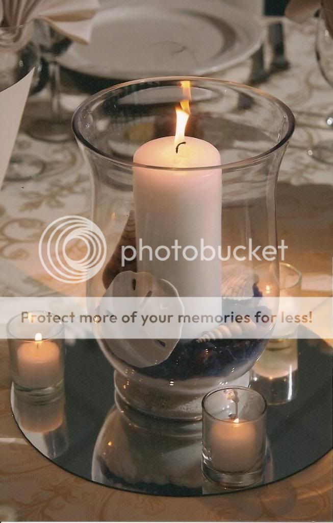 Centerpieces DIY B My sis was a huge help. They were a lot of work. I knew I wanted candles and not flowers. Another thing I think I should have had someone else make for us.