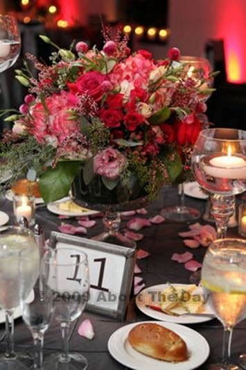 I gave her my budget and gave her carte blanche as far as the flowers went after changing my mind a thousand times. Only thing I said was I wanted the centerpieces to be dark pink on some tables and pale pink on the other ones and I specified that I wanted candles everywhere. Everything from the ceremony (flowers at the altar, petals and candles lining the aisle, bouquets w/crystals in them) all so gorgeous. She added flowers in the bowls on the cocktail hour tables. Then the reception - BREATHTAKING. Truly amazing. I kept saying 'do whatever you want, I just want to walk in and be WOWED' .. This is exactly what happened. If you haven't booked your florist yet - PLEASE call her. You will never regret it. Promise.