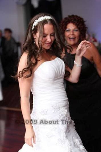 Now onto my bridal attendant, Joette. SHE WAS ABSOLUTELY INCREDIBLE! From the minute I got there she was by my side the whole time. Anything I needed she was there. She was giving me mints, fixing my hair, holding my lip gloss, had tissues for me. She was on top of it all. When my train was being bustled my girlfriend broke one of the ties. Joette pulled out a sewing kit and sewed it for me! During the reception she came to our table and said “your feet must be killing you, I brought you your slippers (I bought bridal ballet slippers from Isotoner – GET THESE – they’re so comfortable!!) .. anyway – she sat on the floor and took my shoes off and slipped on the ballet flats and was massaging my feet!!!!!!!! She was the most helpful, professional, friendly person. Right before I walked down the aisle I started crying – I was so nervous. Her and Hallie were there fanning me and giving me tissues trying to make me laugh so I’d calm down. Truly my rock for the night. I love her.