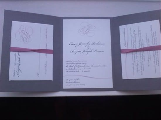 Invites were very important to me as it sets the tone of the whole wedding. These girls made our vision come alive with tri-fold charcoal gray metallic invites w/pink ribbon. I also had them do our menus, escort cards, itinerary for hotel guests, and thank you cards. They were on the expensive side but they are custom made to whatever you want. I had a ton of compliments on them. They were perfect.