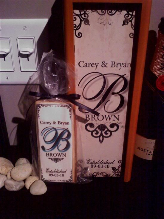 For favors we wanted to do something personal to our story. One of the gifts Bryan got me for the engagement was a custom made wine box. I called Melissa (The Sugar Chic) and showed her a picture of the wine box and she sent me a sample of a cookie which was a replica of the picture. It was EXACTLY like the wine box! Plus – The cookies are DELICIOUS - BONUS!