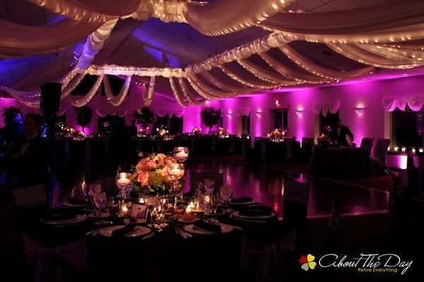 If you are undecided about uplighting – go for it. It makes the room look so beautiful and it really sets the ambience. I dealt with TJ at Apple and from the first five minutes on the phone I knew I was in great hands. I stressed to TJ that we didn’t want it to look like a club in there. No blinking lights or anything like that – I just wanted it to slowly change color throughout the night and he did an awesome job!!! He was affordable and great to work with!