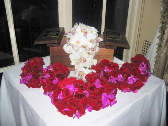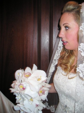 Spitz and Peck – B In the end everything was beautiful. I loved my bouquet it was one of my favorite things….they took orchids and hand strung each of them to make a cascading bouquet. The flower arrangements looked great…but they added colors to the centerpieces that were not originally suppose to be in the arrangements. I had chosen just the color red, and 3 shades of pink. They must of ran out of flowers…b/c a few of the centerpieces had burgundy and white roses in them, while the other half didn’t. They also stuck 2 centerpieces in the far corners, that looked like they were half empty..(like there were no more flowers to finish them) Also, originally I gave them a picture of what I wanted which was originally all peaches and cream flowers. When I went to go see that sample it was horrible and instead of a pale peach.,. they used a salmon orange color. Then I decided that they didn’t understand the design in my picture and changed it to red and pinks. They are def, pricey….and you really should get more for what they charge. They were one of our required vendors…so we kinda had no choice.