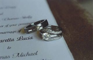 I knew I wanted a double band, otherwise that is all I knew. DH wanted something light and not flashy b/c he isnt used to wearing rings, after talking about it with them they suggested the titanium and DH loved the choices he had and wasnt quick to choose, but did, he chose a titanium band with a single diamond in it-he loves it. I went thru a couple of different rings before I finally decided, they were all single bands, so I picked one and they ordered 2 so they could be bridge around my e-ring. We went in for our rings about 2 months before the wedding, they came in about 1-2 weeks laters. We didnt go there to pick them up and have my rings bridged until the weekend before the wedding (Yes very lazy on our part) but it was no problem. We walked in, said what I wanted and they did the work right in front me and when it was done they inspected all the stones, made sure I was happy and polished it and my e-ring for me. I HIGHLY recommend Gennaro for ANY jewelry needs. The pieces they have are unique are beautiful, they are quality not crap, the service is amazing and really that put together with the security of knowing where your item is at all times is worth it. There are always customers in the store, and they staff is VERY nice!!