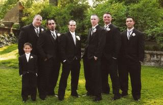 I was very particular about what I wanted in a tuxedo, I told Francesca what I was looking for and she found it. We went in and it was EXACTLY what I wanted, all the boys wore Uomo shadow tuxes-including the dads and they looked sharp. When I told Bob what color the girls were wearing he pulled out 2 ties that matched perfectly. Things did get a little complicated as DH was originally in a white vest and tie and I didn’t really love it-and we added a RB. I had called a week prior to the wedding to change the colors for DH and the RB vest and tie and was told no problem. The day they picked them up however the changed were not noted, I spent about 30 minutes on the phone (not with Bob) going over the changes-for whatever reason DH called me and told me that they don’t make the changes over the phone you have to go in and make changes-that I can understand-but why I had to be the one to give them the changes when DH was standing right there I don’t know.