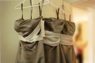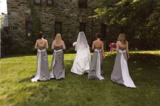 My BMs dresses came in 3 weeks before the wedding-and this was a little complicated-2 of them live in Nassau and the other one lives in SC. I shipped out one dress and she had no problems with hers. The other 2 their first fittings went fine. The fourth went in for her fitting during the week and due to work I couldn’t make it. I showed her what was supposed to be done to the tails so she could explain it to the seamstress. When the 2 girls made their final appointments we waited an hour (this is the same day I had my non-fitting fiasco) b/c their bustles had not been done. They were in and out no problem. The fourth girl I met at the store the Wednesday before my wedding for her final and of course there was a problem. The tails were never done. They pinned them and guaranteed to me that it would be done for me to pick up the next day (the day before my wedding). We went in and picked up all the dresses-steamed and pressed and ready to go. We get all the dresses home and by sheer luck the fourth BMs dress fell off the hanger. When we picked it up my MOH noticed that her tails were still pinned