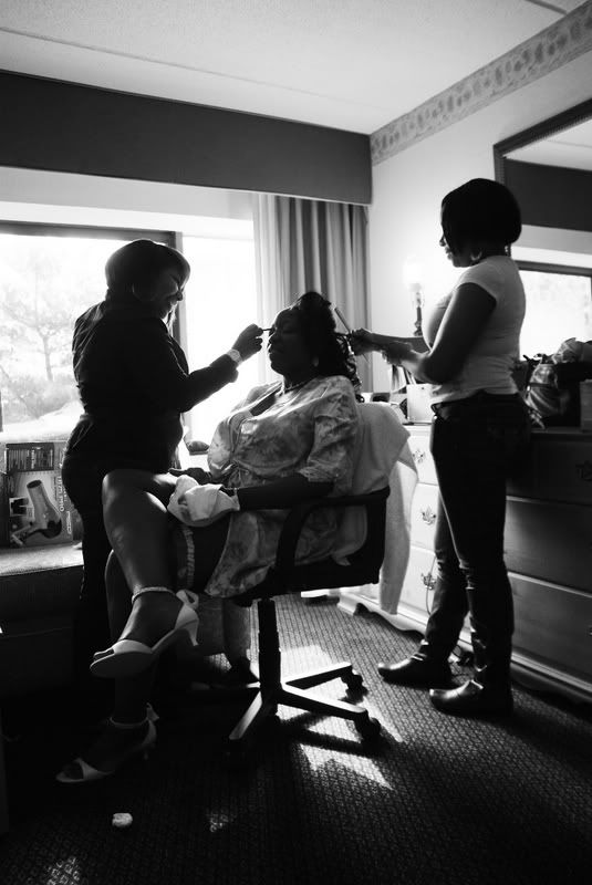 Ok, Makeup done, hair done, clothes on. A few pics of DH and I getting ready for our BIG day