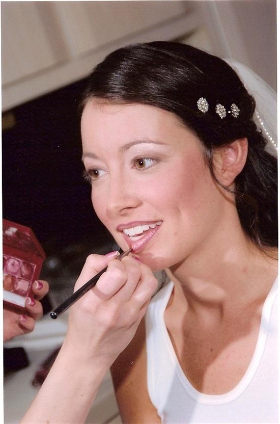 Bridget did my hair, my mom's hair, and 4 BM's hair. She arrived right on time at 8:30 and had everyone finished by about 11:30. Some of my bridesmaids had pictures and some didn't but she did an equally great job either way. Everyone was very happy with their hair. The day of the wedding I wanted something a little different from my trial so there was more hair down then pulled back. When she finished it, though, I wasn't happy. Bridget insisted that she wasn't leaving until I was completely satisfied. I sat back down about 3 times and she just kept modifying everything. In the end I was happy but I wish it was a little more polished and a little less stiff/pulled back then it was. I asked her to pull some hair over my ears and at some angles in the pics, you could see that it was pulled out. If I had seen that or any other problems before she left, she would've fixed it with no problem but I didn't see it. Overall, though I felt like she did a great job.
