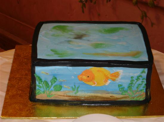 As some of you may remember, I debated on whether or not I should get a groom's cake for the RD. It was a lot of money, especially to have it delivered to Douglaston from Sayville, but in the end it was completely worth it. The cake came out incredible, and was huge enough to feed 35 people and have a ton of leftovers. It was so beautiful and even the wait staff at Giardino's kept commenting on how beautiful it was. I decided on the aquarium cake because DH loves fish and even got me into keeping fish. The two fish on the cake were modeled after fish that we actually had as pets. I didn't call Thomas at Audrey's Bakery even once. We did everything over email and I just sent him pictures. He was a pleasure to work with. The inside was yellow cake with strawberry and banana crème. It was delicious!