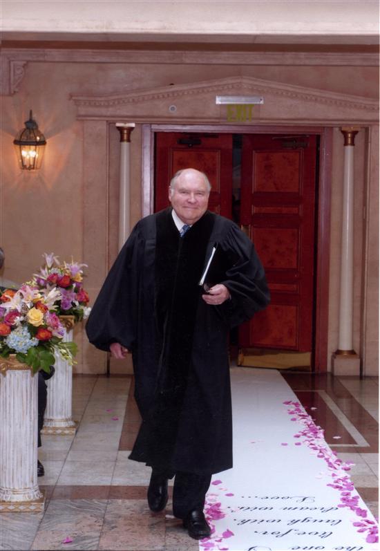 udge Corbett is a retired judge, and was recommended by a few brides on LIW. My first impression upon meeting him was that he was very nice, organized, and on top of things. He mentioned that if for any reason he has an emergency and cannot make it the day of the wedding, he has a few friends who are judges, and they fill in for each other in these types of situations. He said that it had never happened to him though. It was still nice to know that he had a backup plan in case anything happened. Judge Corbett sent us a template of his usual ceremony, and there were a lot of optional readings and poems. My DH and I did not want to write our own vows, partly because we wanted something traditional, and partly because we knew we would obsess too much over writing them. Judge Corbett's ceremony template allowed us to choose traditional vows, and also have some meaningful readings. Even though we had a civil ceremony, we also broke the glass (for my mother) and had a unity candle ceremony. Judge Corbett even had a few choices in his template for what we wanted to say about these traditions. Everyone really loved our ceremony.