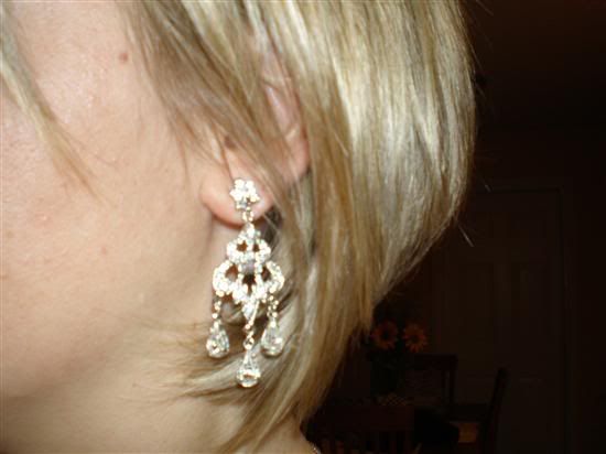 I changed my mind a thousand times about the jewelry I was going to wear the day of. I knew I did not want a necklace because it would have taken away from the detail at the top of my gown. I originally ordered earrings and a bracelet from Regina B. Both were gorgeous but later I found earrings that matched my dress better from annabellagio.com. I stuck with the Regina B. bracelet though. I still have the never worn Regina B. earrings that I am willing to sell if anyone is interested! The chandeliers are the Regina B.’s.